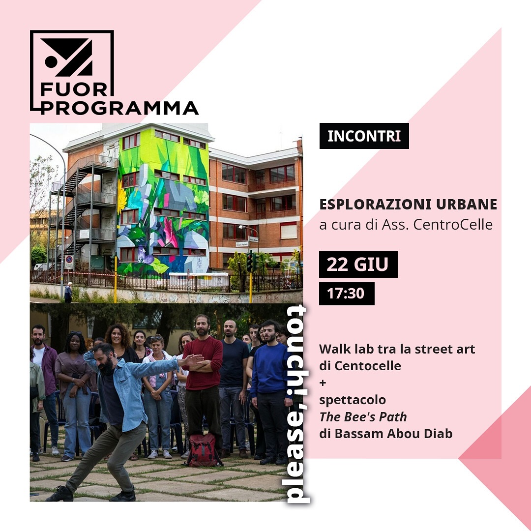 Abbiamo pensato di unire due linguaggi, quello murale e quello della danza, alla scoperta di una dimensione artistica di Centocelle, in un'operazione di conoscenza e di restituzione. Per affrontare un viaggio culturale, artistico, personale. Ed arrivare alla definizione di nuovi paradigmi, grazie alla collaborazione con FUORI PROGRAMMA | Please, Touch!